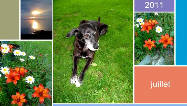 J’ai fleuri la présentation du mois avec ces superbes fleurs-en-héritage. Le coucher de soleil pris du quai de Kamouraska sera peut-être semblable à celui du premier juillet? J’y serai sans doute…