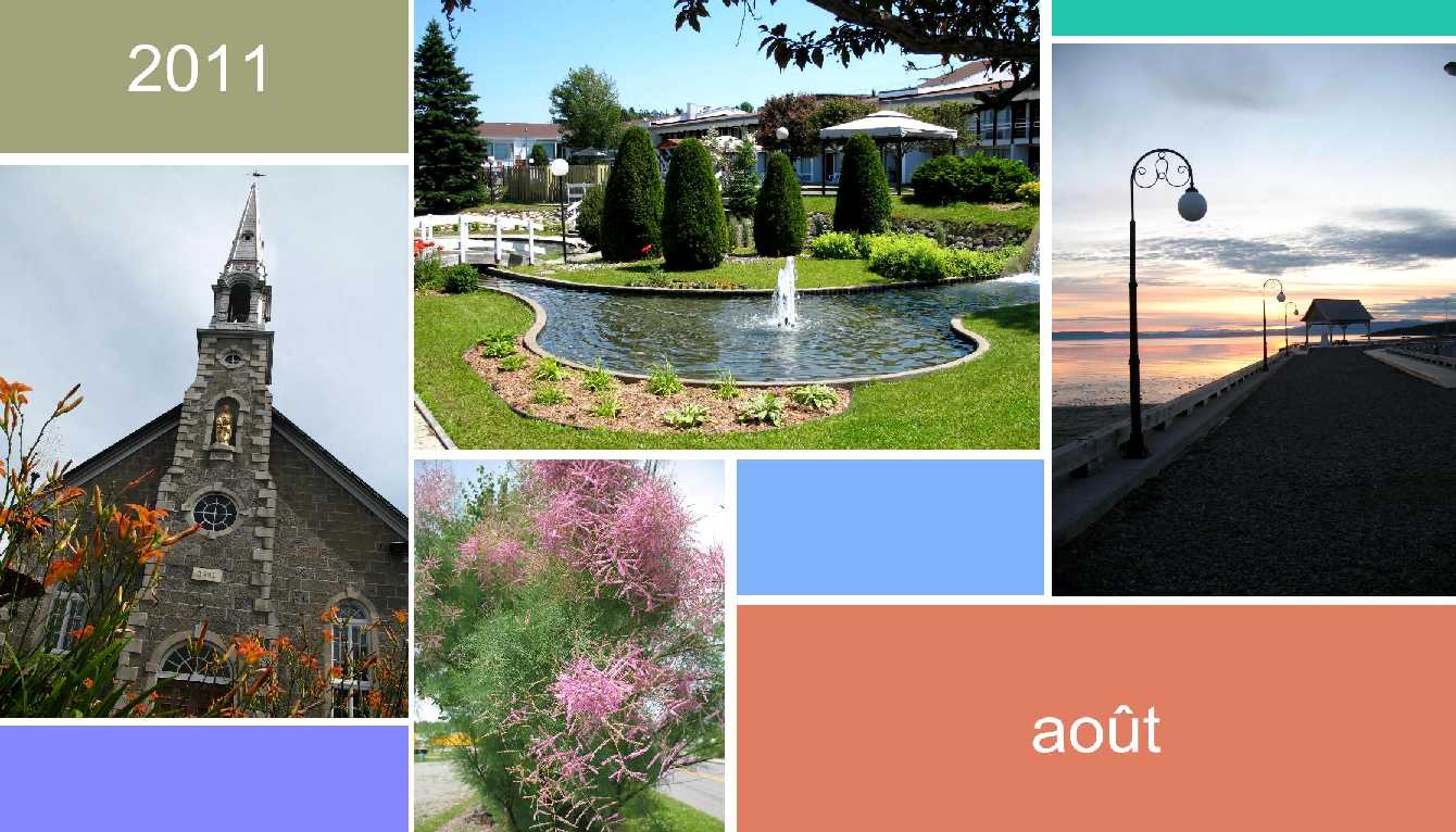 Ce dimanche matin, la Chapelle Sainte-Anne, le parc du Manoir Taschereau et les aires fleuris de Ste-Marie, côtoyaient une Chaudière calme et magnifique. La photo centrale a été prise aux jardins de l’Hôtel Lévesque à Rivière-du-Loup. Un gîte accueillant, offrant une excellente cuisine ainsi qu’une grande piscine extérieure. Le coucher de soleil du quai de Kamouraska me donne le goût d’y retourner cet été.