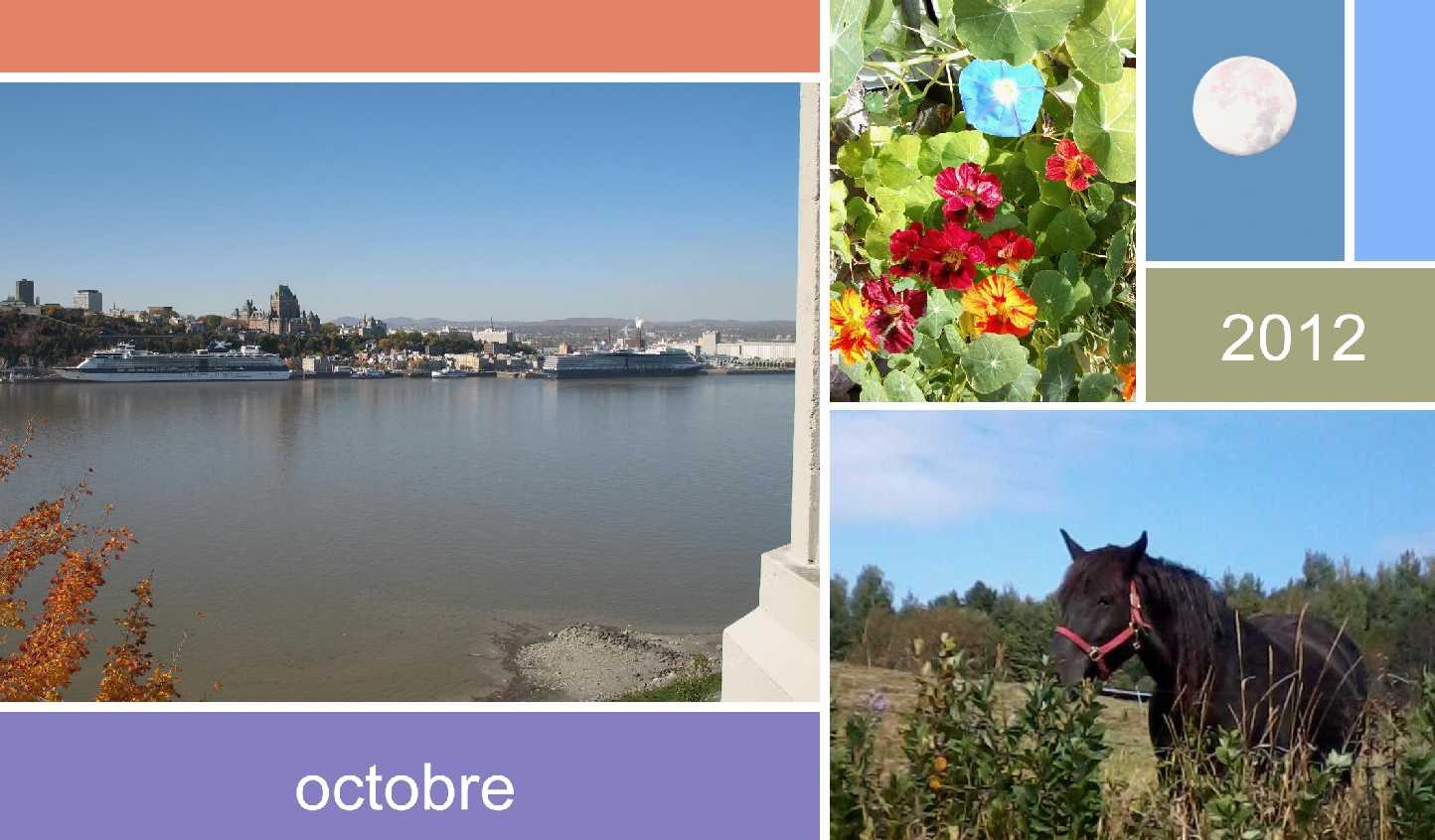 J’ignore si, comme moi, vous aimez l’eau, le St-Laurent, les navires? Octobre est le mois des croisières. Il y a de fortes pointures qui viendront visiter Québec. Le Queen Mary II y était le 28, mais vous pouvez être assurés qu’il y en aura un à trois, par jour, jusqu’au 15. Vous pouvez voir l’horaire des navires attendus sur le site du Port de Québec.